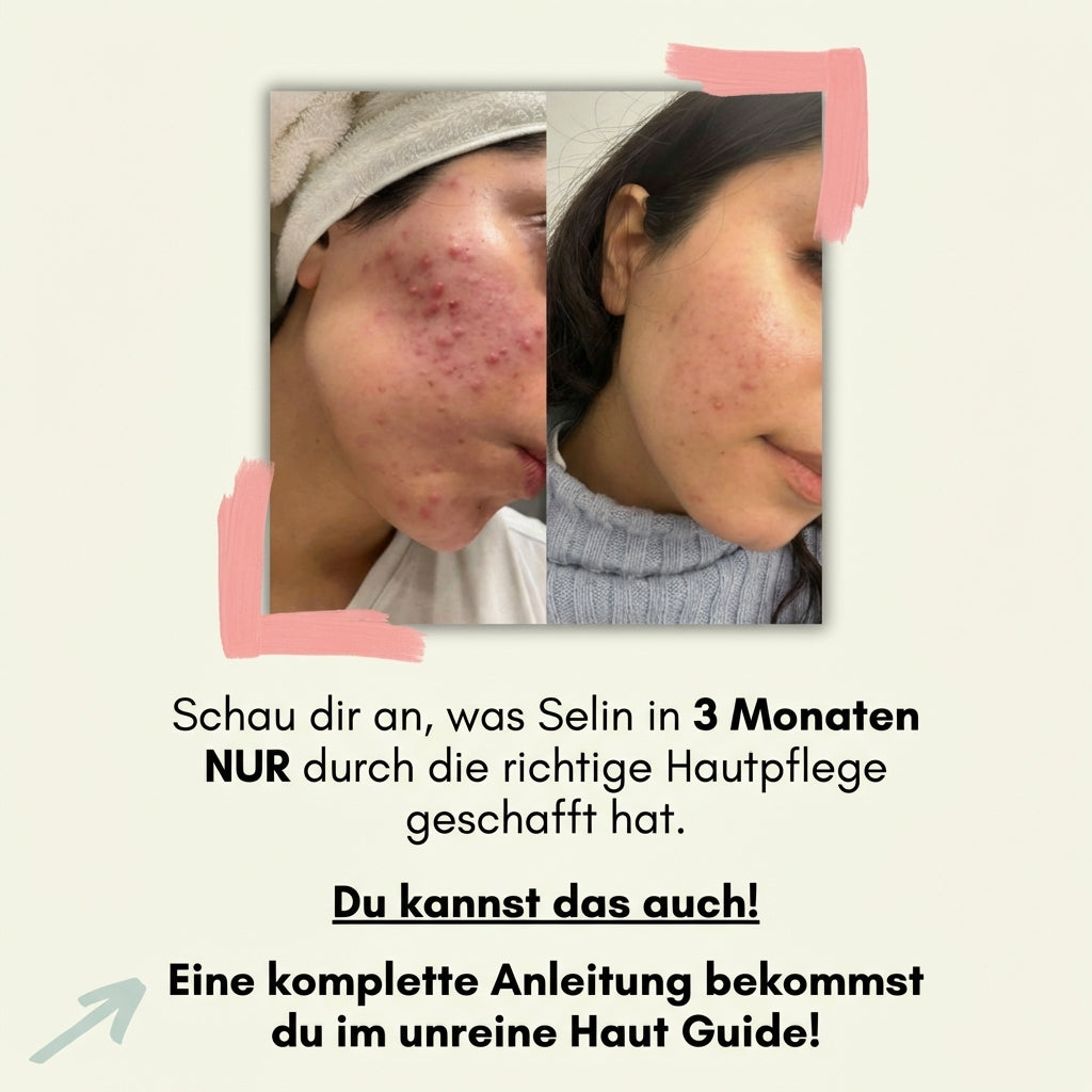 Mit dem Unreine Haut Guide lernst du, deine Haut zu verstehen, anstatt sie mit den falschen Produkten zu überfordern. Schluss mit Fehlkäufen –> starte jetzt deine wissenschaftlich fundierte Reise zu einem gesunden Glow.